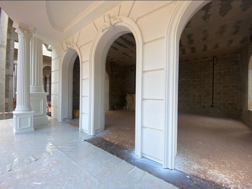 This project presents the elegance of neoclassical architecture, featuring white buildings, columns, arches, and intricate designs against the backdrop of blue skies and greenery.